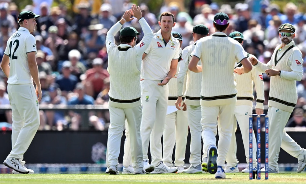 Hazlewood also accounted for Latham (38) and Daryl Mitchell (four), both caught by wicketkeeper Alex Carey as well as Rachin Ravindra caught by Usman Khawaja at first slip.