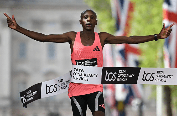 Kenya’s defending champion Sawe was locked in a tight battle with Ethiopia’s Yomif Kejelcha in the closing stages but surged clear to cross the line in 1hr 59min 30sec.