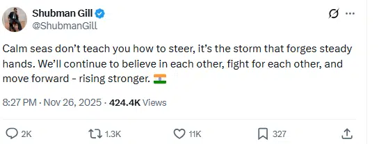 Shubman took to his social media account and wrote a meaningful post, mentioning the defeat, noting that challenges forge resilience, and reaffirming his commitment to the team’s unity and progress.