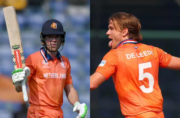 Earlier, Bas de Leede had made an impact with the ball, claiming two key wickets as the Netherlands restricted Namibia to 156-8.